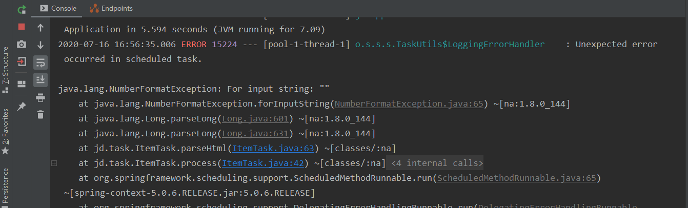 @Component public class ItemTask { @Autowired private HttpUtils httpUtils; @Autowired private ItemService itemService; public static final ObjectMapper MAPPER = new ObjectMapper(); //设置定时任务执行完成后,再间隔100秒执行一次 @Scheduled(fixedDelay = 1000 * 100) public void process() throws Exception { //分析页面发现访问的地址,页码page从1开始,下一页page加2 String url = "https://search.jd.com/Search?keyword=%E6%89%8B%E6%9C%BA&suggest=1.his.0.0&wq=%E6%89%8B%E6%9C%BA&s=121&click=0&page="; //遍历执行,获取所有的数据 for (int i = 1; i < 10; i = i + 2) { //发起请求进行访问,获取页面数据,先访问第一页 String html = this.httpUtils.getHtml(url + i); //解析页面数据,保存数据到数据库中 this.parseHtml(html); } System.out.println("执行完成"); } //解析页面,并把数据保存到数据库中 private void parseHtml(String html) throws Exception { //使用jsoup解析页面 Document document = Jsoup.parse(html); //获取商品数据 Elements spus = document.select("div#J_goodsList > ul > li"); //遍历商品spu数据 for (Element spuEle : spus) { //获取商品spu String attr = spuEle.attr("data-spu"); long spu = Long.parseLong(attr.equals("")?"0":attr); // Long spu = Long.parseLong(spuEle.attr("data-spu")); //获取商品sku数据 Elements skus = spuEle.select("li.ps-item img"); for (Element skuEle : skus) { //获取商品sku Long sku = Long.parseLong(skuEle.attr("data-sku")); //判断商品是否被抓取过,可以根据sku判断 Item param = new Item(); param.setSku(sku); List<Item> list = this.itemService.findAll(param); //判断是否查询到结果 if (list.size() > 0) { //如果有结果,表示商品已下载,进行下一次遍历 continue; } //保存商品数据,声明商品对象 Item item = new Item(); //商品spu item.setSpu(spu); //商品sku item.setSku(sku); //商品url地址 item.setUrl("https://item.jd.com/" + sku + ".html"); //创建时间 item.setCreated(new Date()); //修改时间 item.setUpdated(item.getCreated()); //获取商品标题 String itemHtml = this.httpUtils.getHtml(item.getUrl()); String title = Jsoup.parse(itemHtml).select("div.sku-name").text(); item.setTitle(title); //获取商品价格 String priceUrl = "https://p.3.cn/prices/mgets?skuIds=J_"+sku; String priceJson = this.httpUtils.getHtml(priceUrl); //解析json数据获取商品价格 double price = MAPPER.readTree(priceJson).get(0).get("p").asDouble(); item.setPrice(price); //获取图片地址 String pic = "https:" + skuEle.attr("data-lazy-img").replace("/n9/","/n1/"); System.out.println(pic); //下载图片 String picName = this.httpUtils.getImage(pic); item.setPic(picName); //保存商品数据 this.itemService.save(item); } } } }