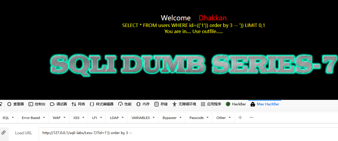 http://127.0.0.1/sqli-labs/Less-7/?id=1')) order by 3 --