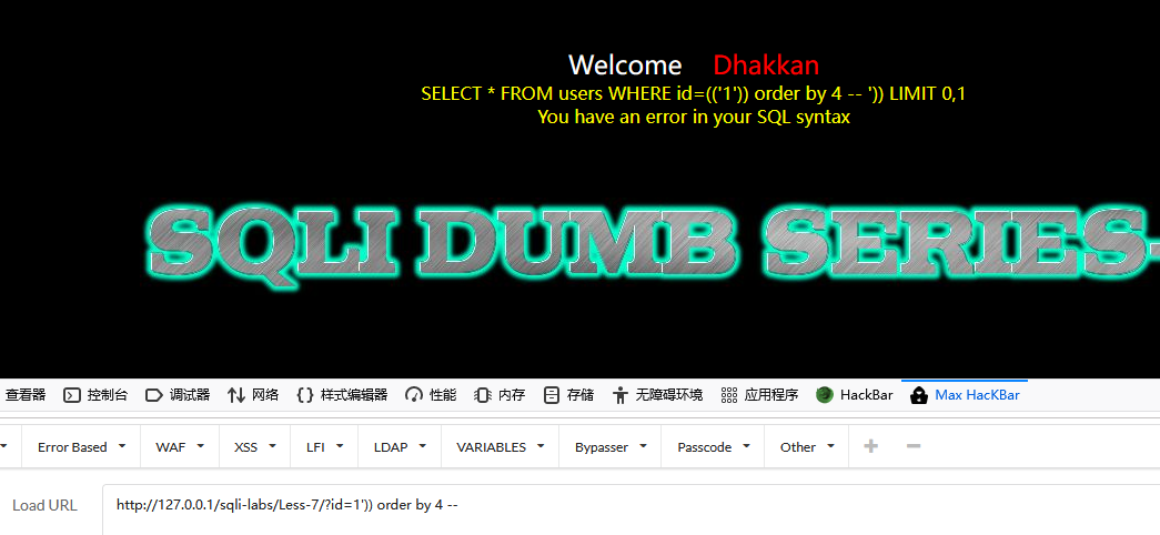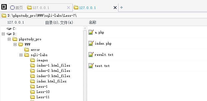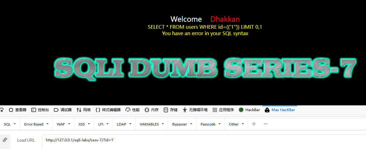 http://127.0.0.1/sqli-labs/Less-7/?id=1'