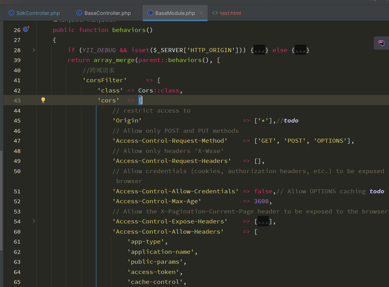 导致在BaseController文件behaviors方法中跨域设置失效,更改到BaseModule文件behaviors中解决