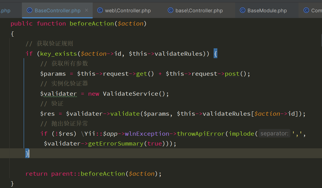 由于自己在BaseController文件beforeAction中写了参数验证功能