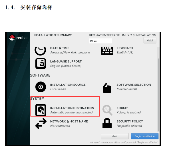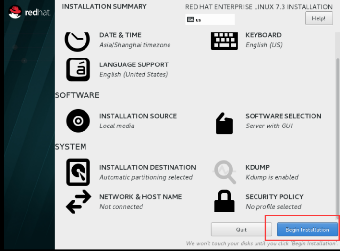 全部配置完成后点击“Begin Installation”,开始安装。