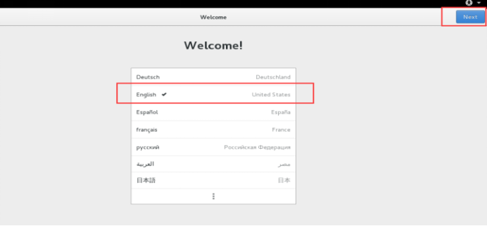 设置系统使用语言为“English”,点击“Next”继续