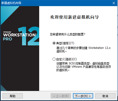 打开”新建虚拟机向导“——选择“典型”(一般学习用途不会用到其他高级选项)