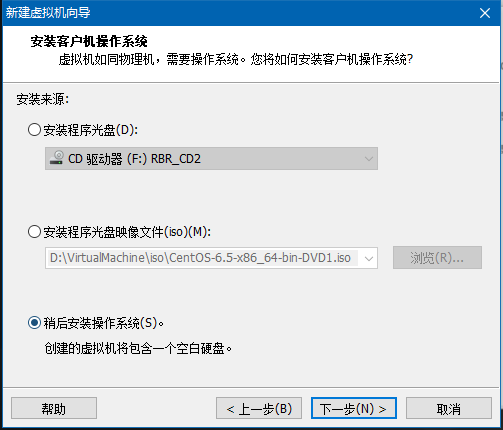 先配置虚拟机平台,所以选择”稍后安装操作系统“