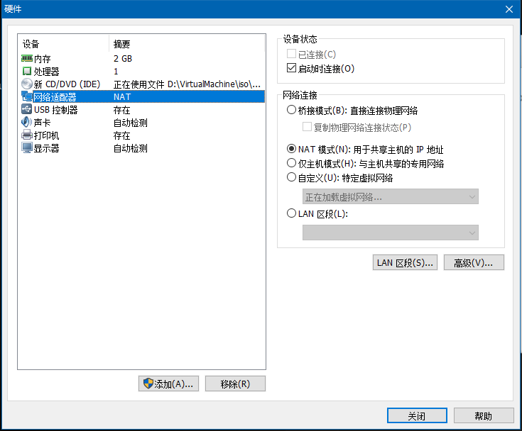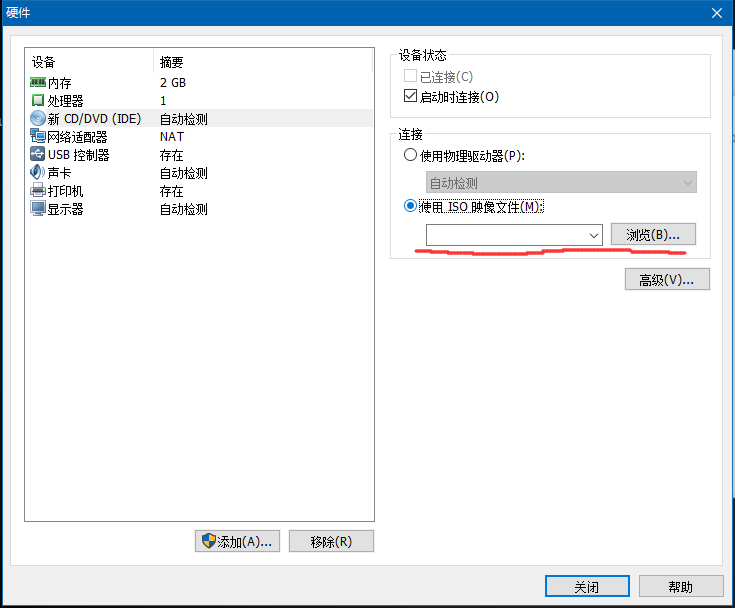 设置虚拟机“自定义硬件”