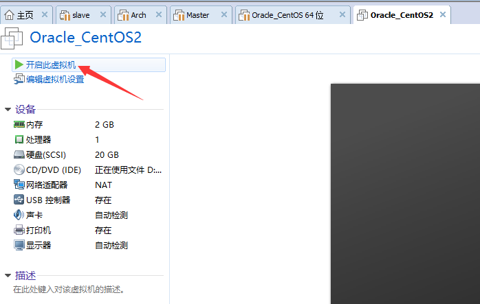 第二步:选择刚刚生成的虚拟机,点击”开机“;