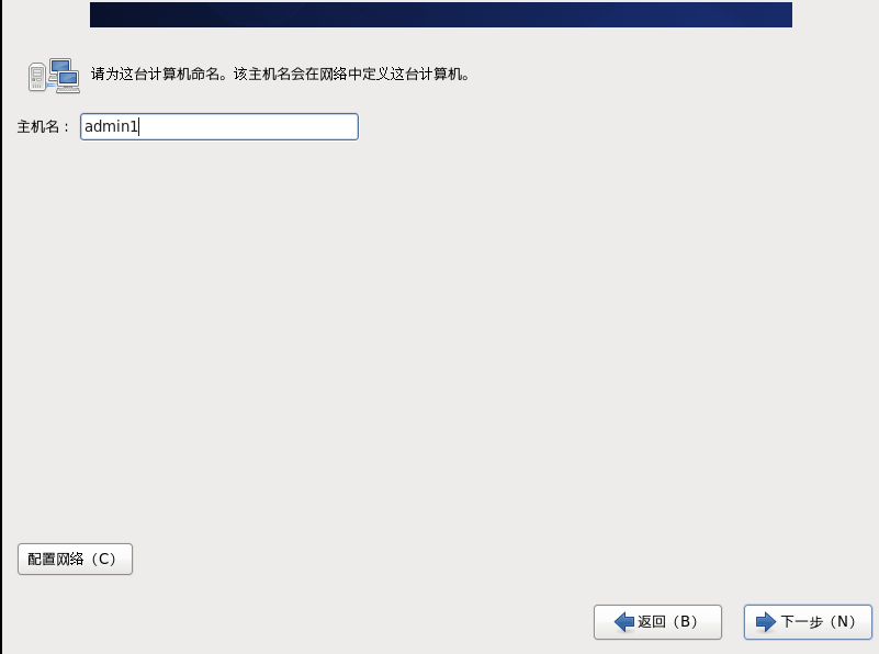 ”主机名“根据自己喜好设置——“配置网路”(方便电脑自动联网)