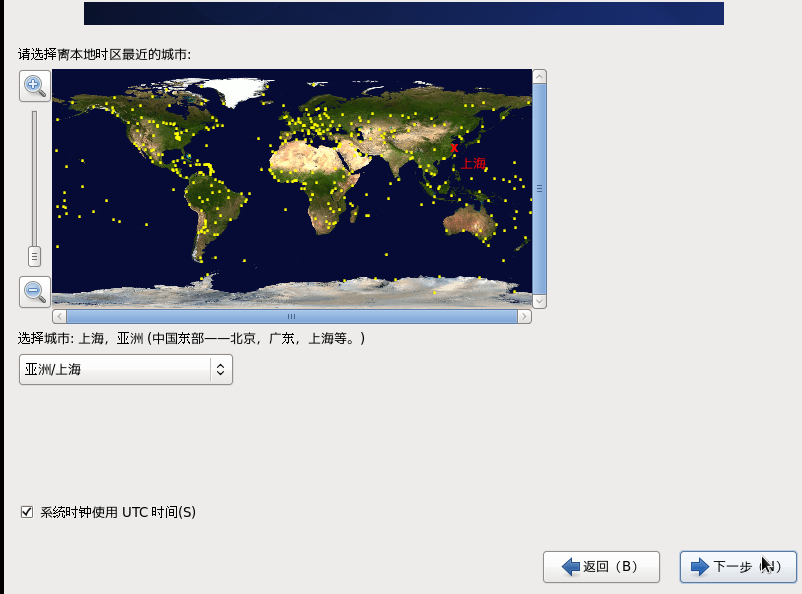 “时区”选择”亚洲上海“———下一步