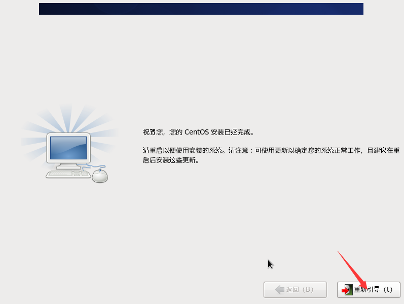 安装完成——点击“重新引导”重启虚拟机