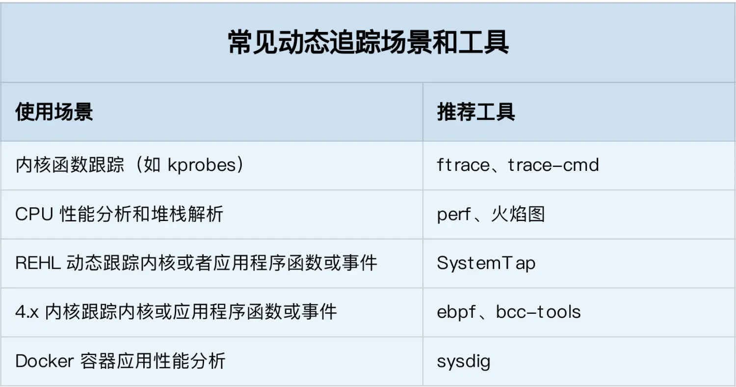 上面 mysql 火焰图的示例,就表示了 CPU 的繁忙情况,这种火焰图也被称为 on-CPU 火焰图。如果我们根据性能分析的目标来划分,火焰图可以分为下面这几种。