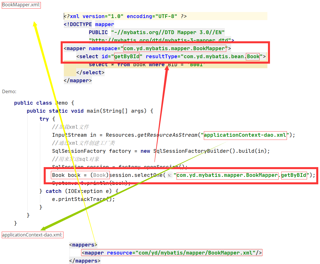 Book book = (Book)session.selectOne("com.yd.mybatis.mapper.BookMapper.getByBId");