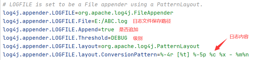 使用log4j.properties的配置文件,可以设定log4j的信息,如:日志级别、输出方式、格式等等。
