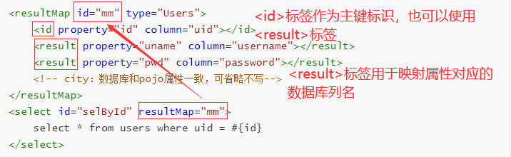 <result property="uname" column="username"></result>