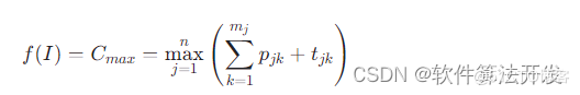 适应度函数:根据优化目标定义适应度函数。以最小化最大完工时间(Makespan)为例,适应度函数为: