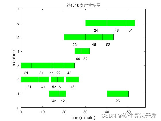 基于遗传模拟退火混合优化算法的车间作业最优调度matlab仿真,输出甘特图