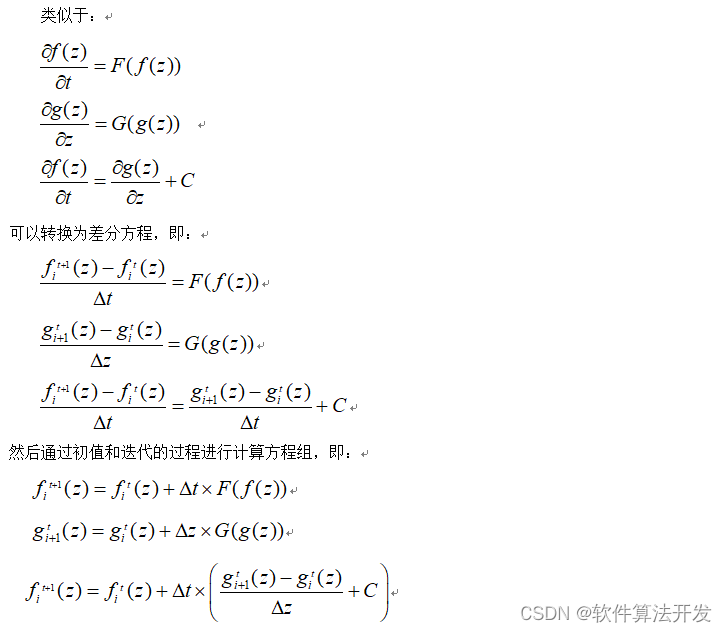 基于离散差分法的复杂微分方程组求解.“连续微分方程”到“离散微分方程”到“差分方程”,离散微分方程,变成差分方程。建立差分方程时,时间采用一阶显格式,空间采用一阶偏心差分格式。