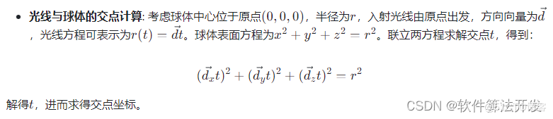 光线追踪是一种渲染技术,通过追踪从视点出发的光线,模拟光线与场景中物体的交互(如反射、折射等),以计算像素的颜色。对于球体的反射,主要考虑镜面反射和漫反射两种情况。