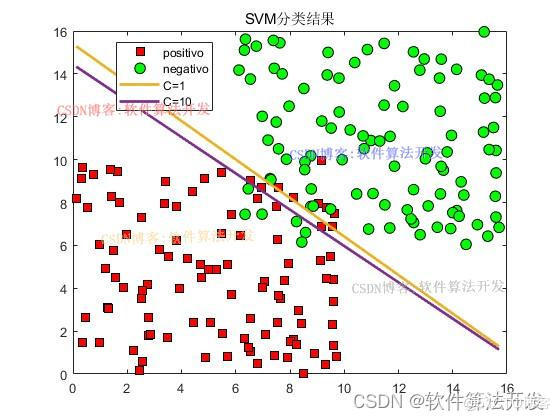 基于线性核函数的SVM数据分类算法matlab仿真,通过程序产生随机的二维数据,然后通过SVM对数据进行分类,SVM通过编程实现,不使用MATLAB自带的工具箱函数。