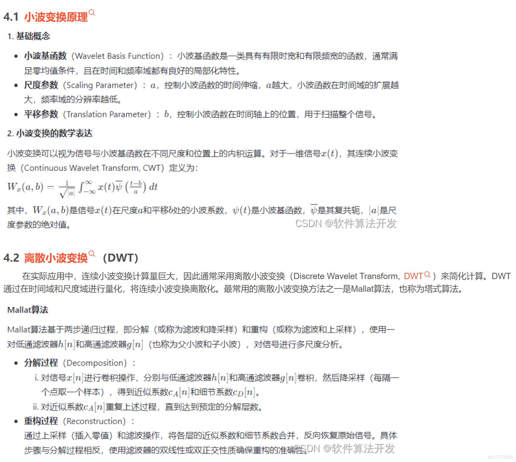 一维信号的小波变换是一种时频分析方法,它通过在不同的尺度上分析信号,以捕捉信号的局部特征和时频结构。小波变换能够提供时间局部化和频率局部化的信息,这对于非平稳信号的分析尤为有效。小波变换的核心思想是使用一族具有多分辨率特性的基函数——小波基,这些基函数在时间和频率上都有局部化特性,既能在时间域聚焦于信号的某一局部,也能在频率域集中于某一频带。