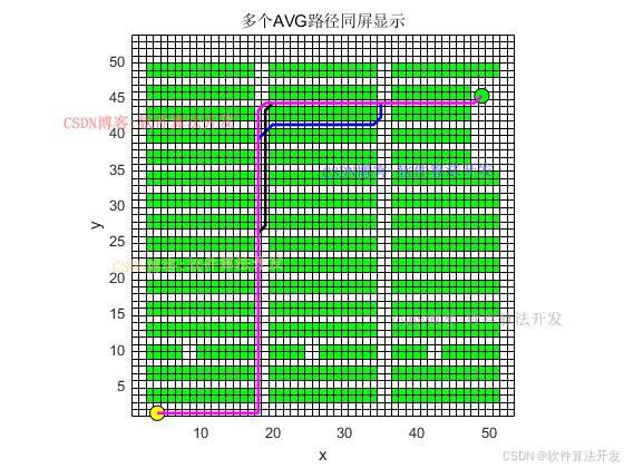 基于遗传优化算法的多AGV栅格地图路径规划matlab仿真