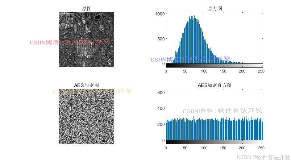 通过AES算法对遥感图像进行加密和解密,分析加解密处理后图像的直方图,相关性,熵,解密后图像质量等。