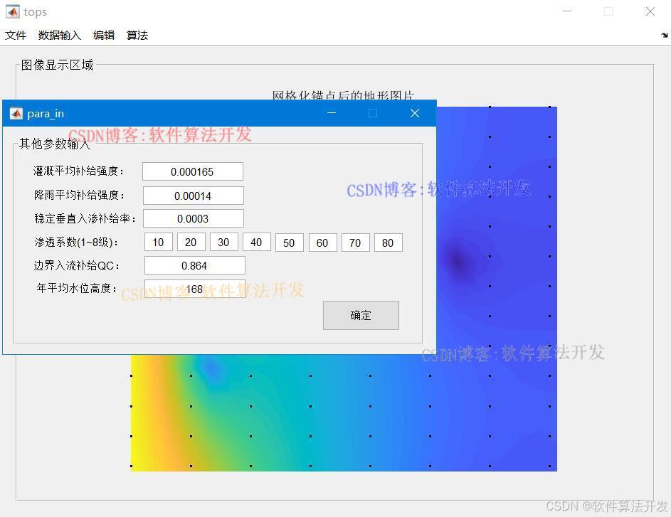 基于MATLAB的地下水模拟系统开发,通过MATLAB的GUI功能,设计一个界面,通过该界面可以输入地下水模拟系统的参数,边界条件等。系统包含径向基算法,有限元方法,输出地下水位等高线,立体图等。