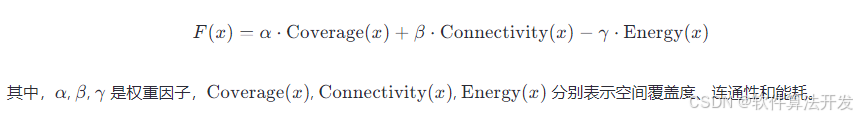 适应度函数综合考虑了空间覆盖度、连通性和能耗三个因素: