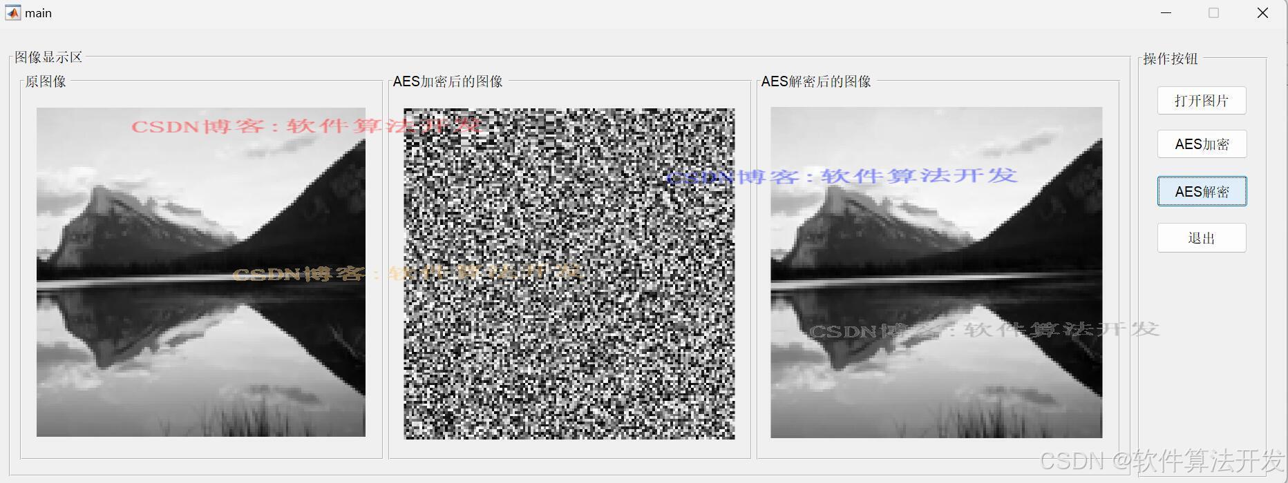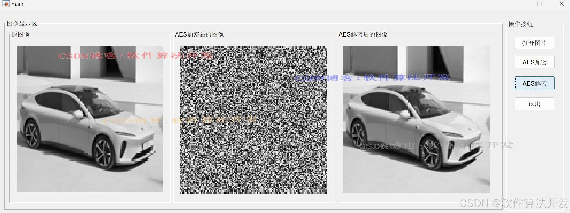 基于AES的图像加解密算法matlab仿真,带GUI界面。在GUI界面上进行操作,分别对图像进行AES加密,AES解密。