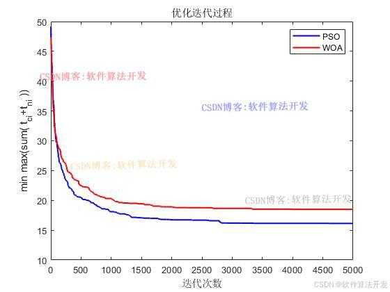 基于PSO粒子群优化的多无人机路径规划matlab仿真,对比WOA优化算法