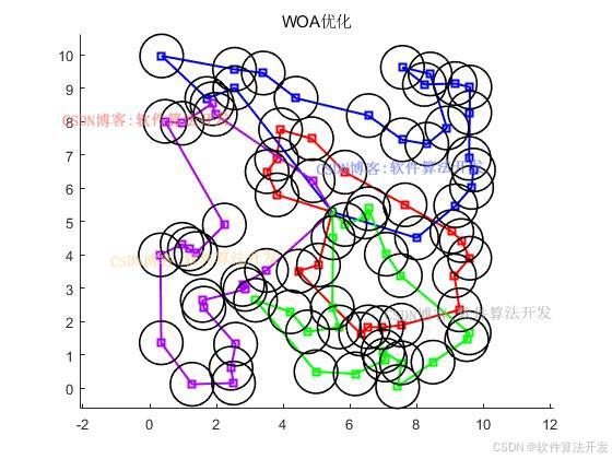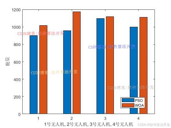 基于PSO粒子群优化的多无人机路径规划matlab仿真,对比WOA优化算法。使用四个无人机,进行路径规划,对比两个算法的能耗,算法复杂度,路径规划结果,算法收敛曲线等指标。
