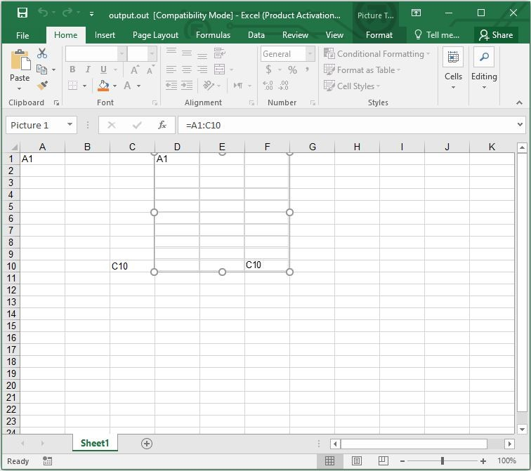 - 使用该addPicture()方法将照片插入到特定的单元格。