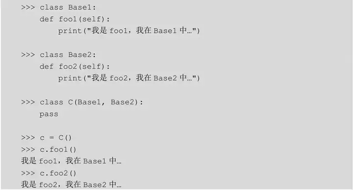 但多重继承容易导致代码混乱,所以当不确定是否必须使用多重继承的时候,请尽量避免使用它,因为有些时候会出现不可预见的BUG。
