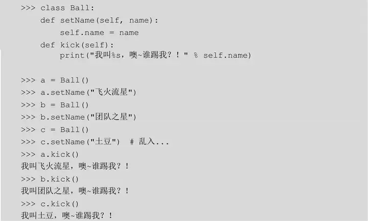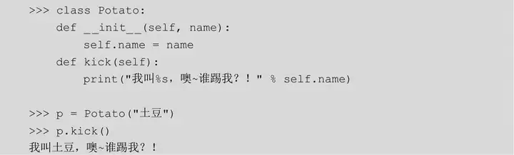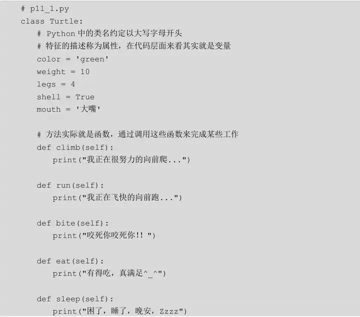 以下代码定义了对象的特征(属性)和行为(方法),但还不是一个完整的对象,将定义的这些称为类(class)。需要使用类来创建一个真正的对象,这个对象就称为这个类的一个实例(instance),也叫实例对象(instance objects)。