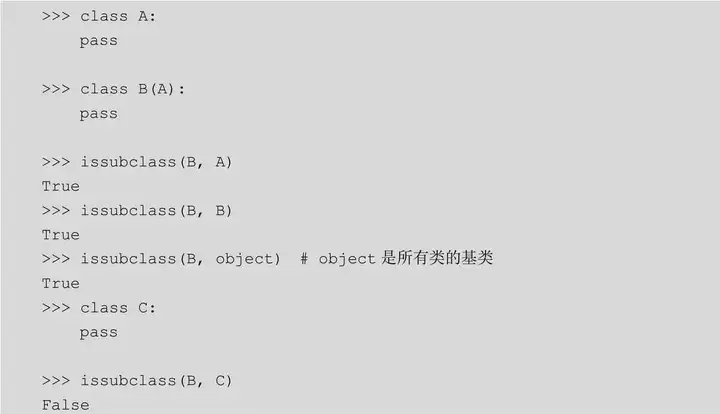 (2)classinfo可以是类对象组成的元组,只要class是其中任何一个候选类的子类,则返回True。