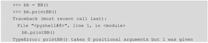 而错误产生实际上由于Python的绑定机制,这里自动把bb对象作为第一个参数传入,所以才会出现TypeError。