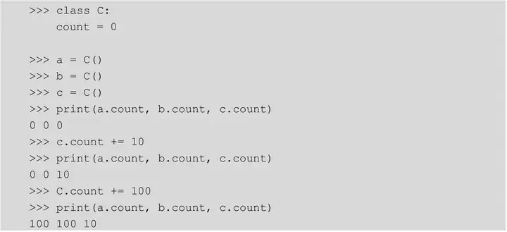 对实例对象c的count属性进行赋值后,就相当于覆盖了类对象C的count属性,如果没有赋值覆盖,那么引用的是类对象的count属性。