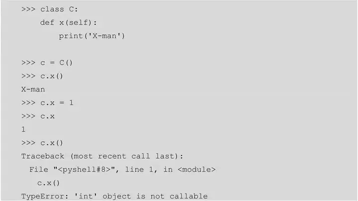 另外,如果属性的名字与方法名相同,属性会覆盖方法: