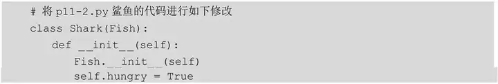解决这个问题的方案:在鲨鱼类中重写_ _init_ _方法的时候先调用基类Fish的_ _init_ _方法。