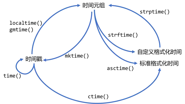 包括三个时间表示方法:时间戳(float)、时间元组(tuple)、格式化时间(string)。