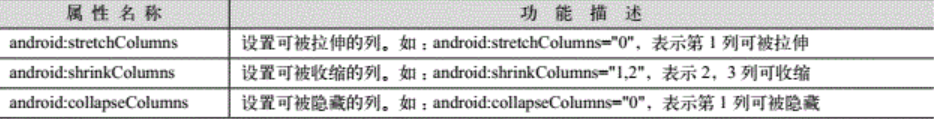 2.4 TableLayout布局常用属性: