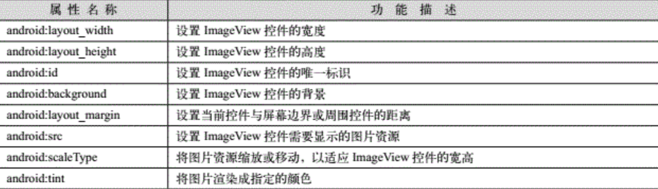 3.4 ImageView :表示图片,它继承自View,可以加载各种图片资源。常用属性如下:
