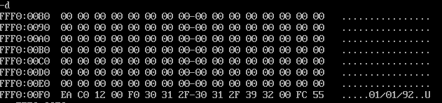 (1)在debug中,使用d命令查看生产日期,得知生产日期为1992/01/01。
