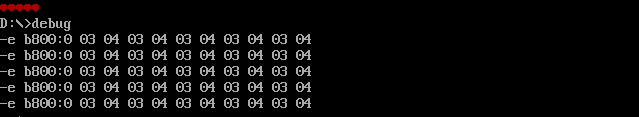 (3)尝试修改内存地址为a800:0, 发现此时屏幕上并没有输出。