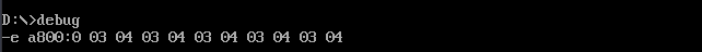 (2)把内存单元区间b800:0f00 ~ b800:0f9f连续160个字节,依次重复填充十六进制数据03 04。