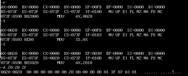 问题一:使用t命令单步执行 mov ss, ax 时,执行完之后并未暂停,继续执行后面的指令 mov sp, 30。