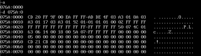 查看task6.exe的程序段前缀,验证得前两个字节是CD 20。