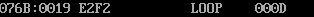 line27,汇编指令loop s1跳转时,是根据位移量跳转的。通过debug反汇编,查看其机器码为E2F2,分析得其跳转的位移量是 -14(补码表示为F2H)。