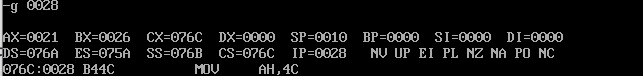 ①根据call指令的跳转原理,先从理论上分析,程序执行到退出(line31)之前,寄存器(ax) =0021 ,寄存器