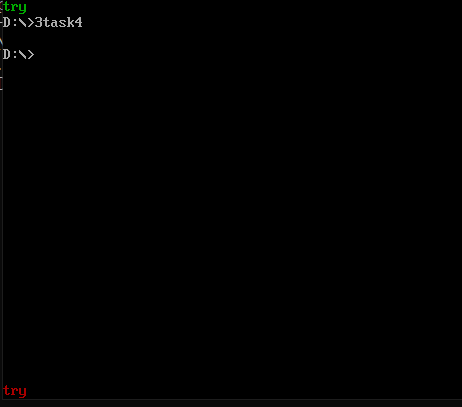 assume cs:code, ds:data data segment str db 'try' len equ $ - str data ends code segment start: mov ax, data mov ds, ax mov si, offset str mov bl, 2 ;设置前景色位绿色 mov di, 0 call printStr mov bl, 4 ;设置前景色为红色 mov di, 0f00h call printStr mov ah,4ch int 21h printStr: push ax push cx push si push di mov ax, 0b800h mov es, ax s: mov cl, [si] ;存放字符数据 mov ch, 0 jcxz over mov ch, bl ;存放字符颜色 mov es:[di], cx ;写入显存 inc si add di, 2 jmp s over: pop di pop si pop cx pop ax ret code ends end start